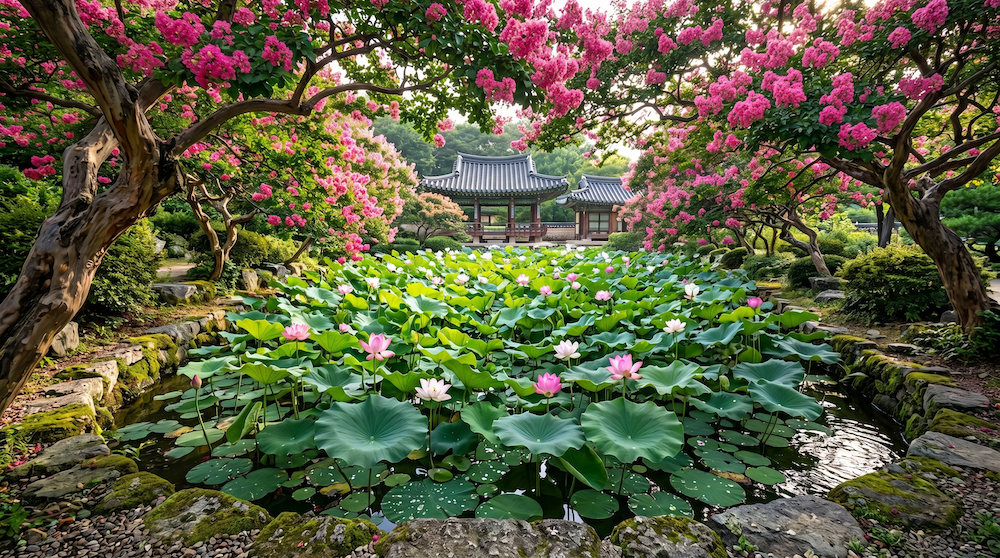 경주의 여름은 강렬한 햇살과 짙은 녹음이 교차하는 '황금의 시간'입니다. 특히 7~8월에만 만날 수 있는 연꽃, 맥문동, 배롱나무의 색채 대비는 글로벌 시장에서도 충분히 매력적인 피사체입니다. 하지만 실제 촬영은 폭염과 인파로 인해 물리적 제약이 큽니다. 바로 이 지점에서 AI의 진가가 발휘됩니다. 가장 완벽한 빛의 각도와 피사체의 상태를 구현해낼 수 있기 때문입니다.