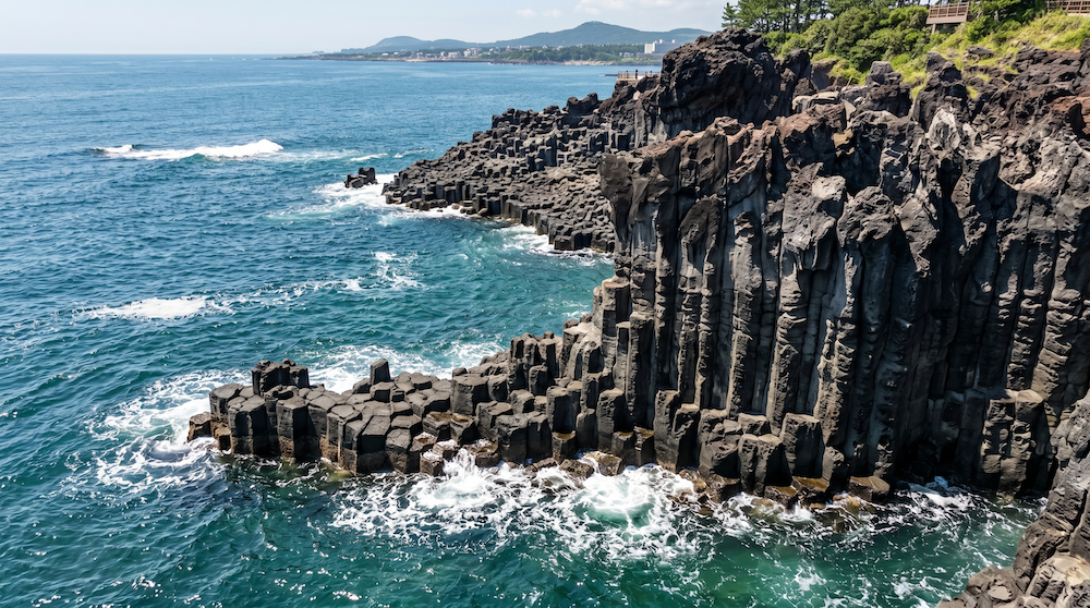 자연이 만든 조각품이라 불리는 주상절리는 현대적인 감각의 풍경 사진 소재로 탁월합니다. 부채꼴 모양의 독특한 지질 구조를 100% 보존하면서, 동해의 투명한 에메랄드빛 파도가 부서지는 포말의 디테일을 살리는 데 주력했습니다. 결과물은 자연의 힘이 느껴지는 강렬한 에너지를 담고 있어, 상업적인 광고 배경으로도 손색없는 퀄리티를 보여주었습니다.